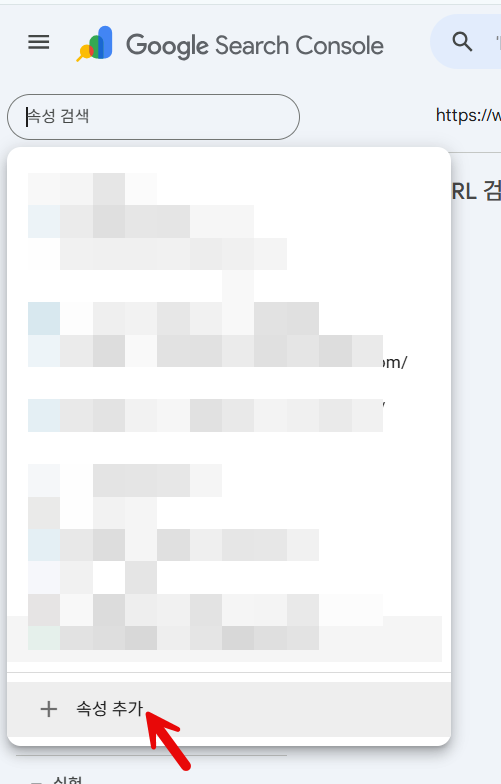 구글에 사이트를 등록하려면 구글 검색 콘솔에서 속성 추가를 선택합니다.