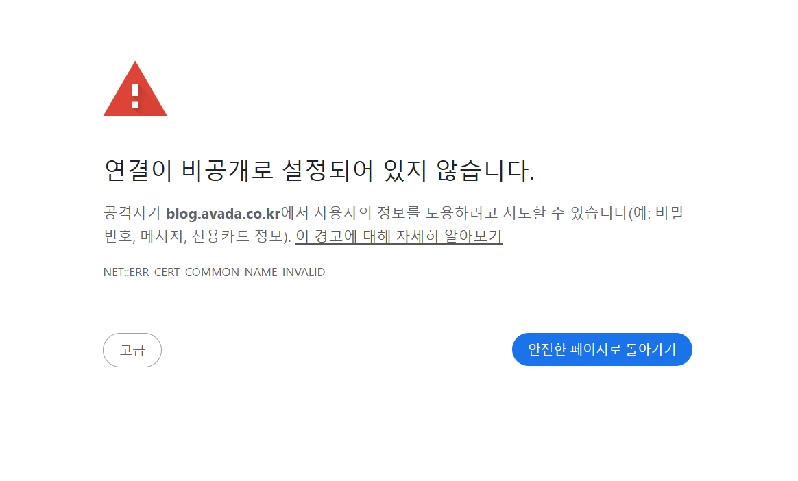 SSL 인증서 발급이 대기 중인 상태이면 개인 도메인 주소로 접속할 경우 구글 크롬 브라우저에서는 "연결이 비공개로 설정되어 있지 않습니다" 경고가 표시됩니다.