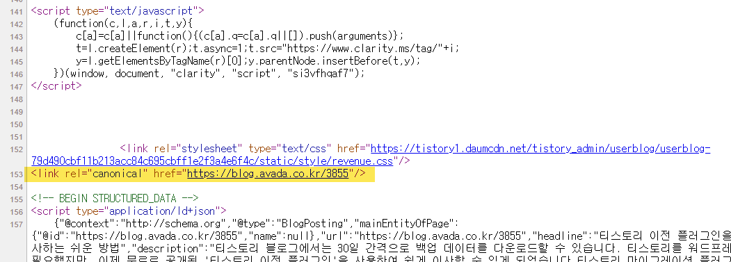 개인 도메인을 연결하면 블로그 게시글에 Canonical 태그가 추가됩니다.