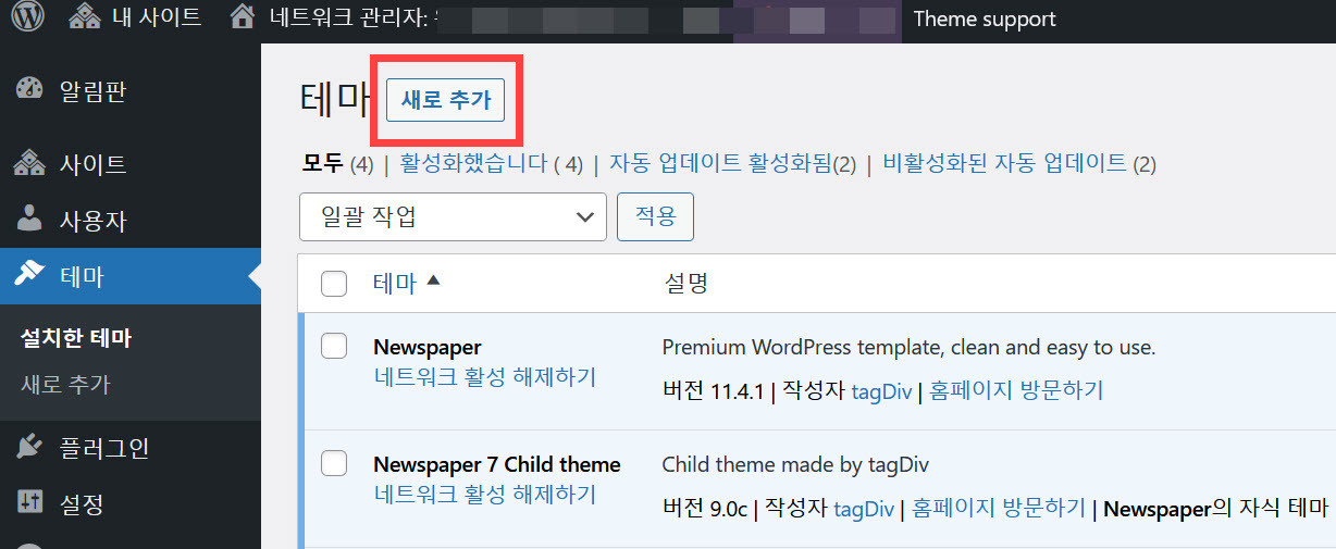 멀티사이트에서 워드프레스 테마 설치하기