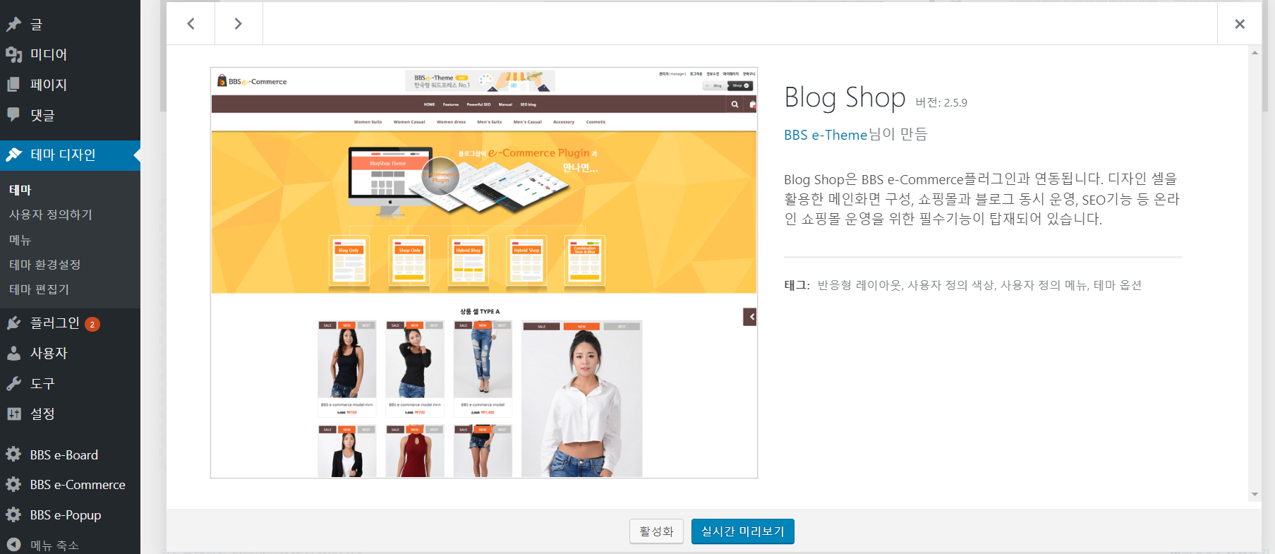 보부상 테마(BBS e-Theme)는 국내업체에서 제작된 워드프레스 테마입니다. 국내 환경에 맞는 레이아웃의 쇼핑몰을 운영하려는 경우 괜찮은 선택일 수 있습니다. 그러나 보부상 테마는 워드프레스 표준과는 다른 자체적인 '디자인 셀'을 이용하고 있습니다. 이 때문에 커스텀하려는 경우 쉽지 않고 전문 개발자에게 의뢰해야 할 수도 있습니다. 보부상 테마를 사용하는 경우 테마와 관련된 문의 사항이 있어도 워드프레스 커뮤니티 사용자들의 도움을 받기는 어렵고 직접 판매업체에 연락하여 지원을 받아야 합니다. 하지만 간단한 질문에 대해서도 제대로 된 지원을 받기 어려울 수도 있습니다. 최근 로고 클릭 시 HTTP 주소로 이동하는 문제에 대하여 문의를 받은 적이 있습니다. example.com 홈페이지 접속시 왼쪽 상단..