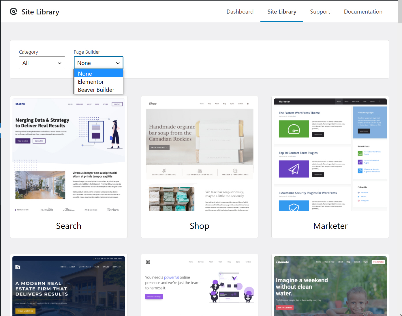 워드프레스 GeneratePress 테마 사이트 라이브러리 데모 로드하기