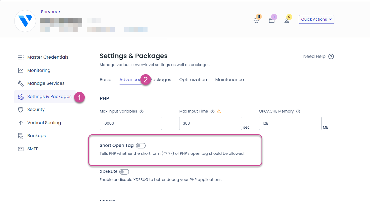 클라우드웨이즈(Cloudways): PHP 짧은 태그(<? ?>) 활성화하기