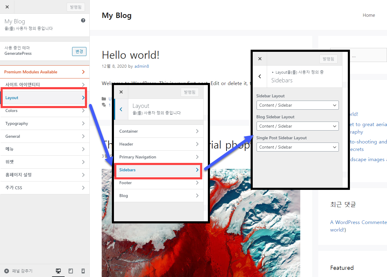 워드프레스 GeneratePress 테마 사이드바 설정하기