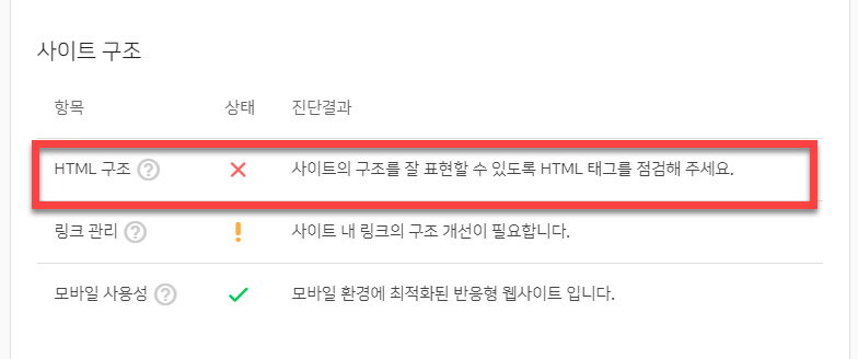 네이버 서치어드바이저 사이트 최적화 오류 'HTML 구조'