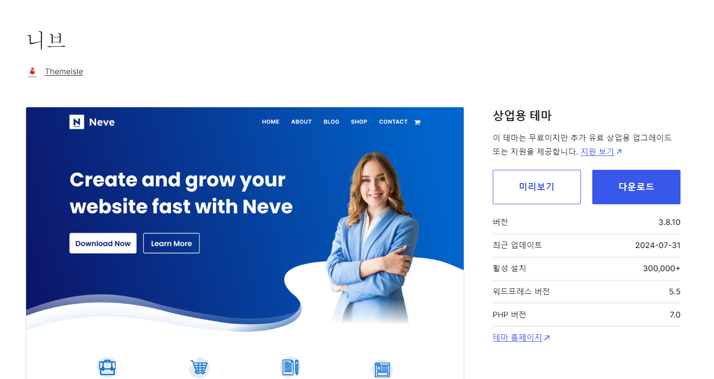 워드프레스 Neve 테마 데모 설치 방법 (니브 테마)