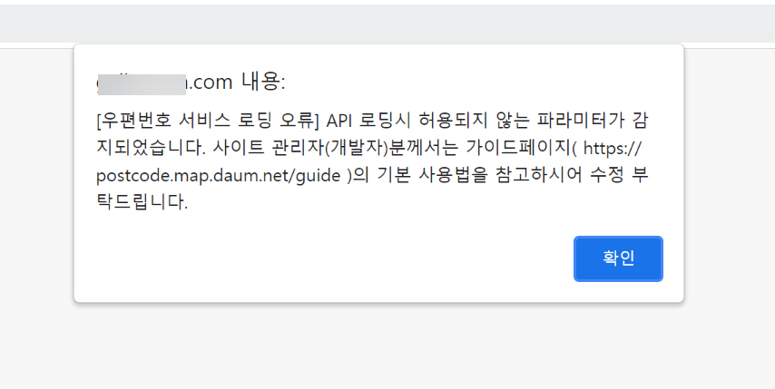 다음 우편번호 서비스를 이용하여 우편번호 기능을 추가한 워드프레스 사이트에서 'API 로딩 시 허용되지 않는 파라미터가 감지되었습니다' 오류가 발생하는 경우가 있습니다. 이 문제가 발생할 경우 대처 방법에 대해 간략히 살펴보겠습니다. 워드프레스에서 '[우편번호 서비스 로딩 오류] API 로딩 시 허용되지 않는 파라미터가 감지되었습니다' 오류가 발생하는 경우 우편번호를 검색하여 도로명 주소를 자동 입력하도록 만든 페이지에서 위의 그림과 같이 오류 창이 표시되는 경우가 간혹 있습니다. [우편번호 서비스 로딩 오류] 워드프레스에서 API 로딩 시 허용되지 않는 파라미터가 감지되었습니다. 사이트 관리자(개발자)분께서는 가이드페이지( https://postcode.map.daum.net/guide )의 기본 사용..