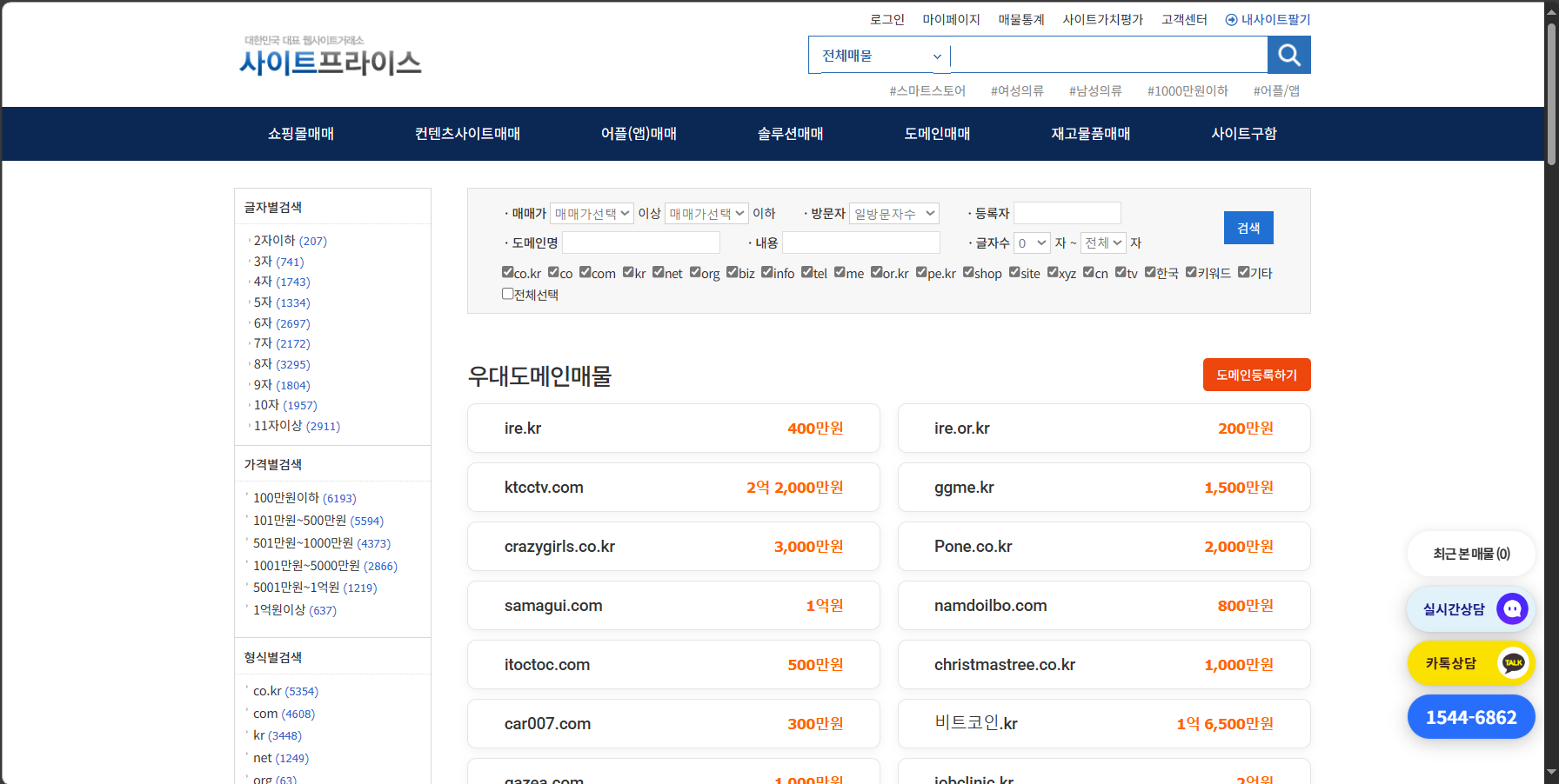 우리나라 도메인 매매 사이트 - 사이트프라이스
