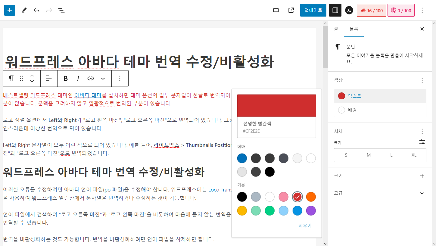 워드프레스 블록 편집기: 특정 텍스트의 글자색을 다르게 설정하기