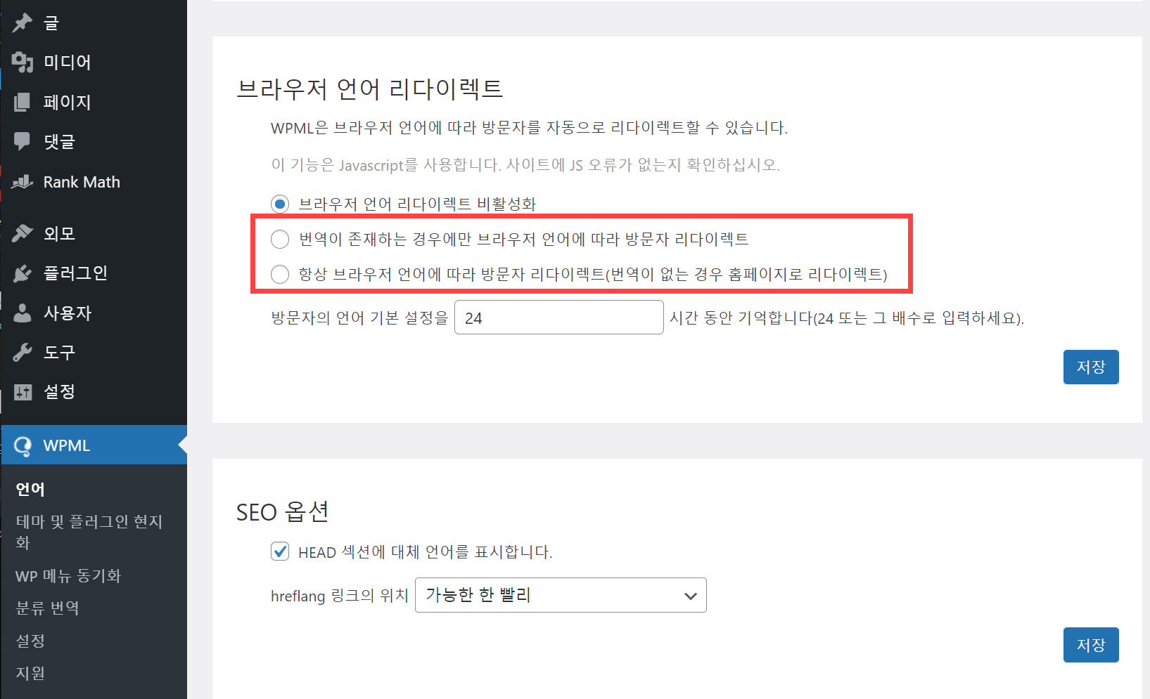 워드프레스: 사용자 브라우저 언어를 감지하여 자동으로 번역된 페이지로 리디렉션