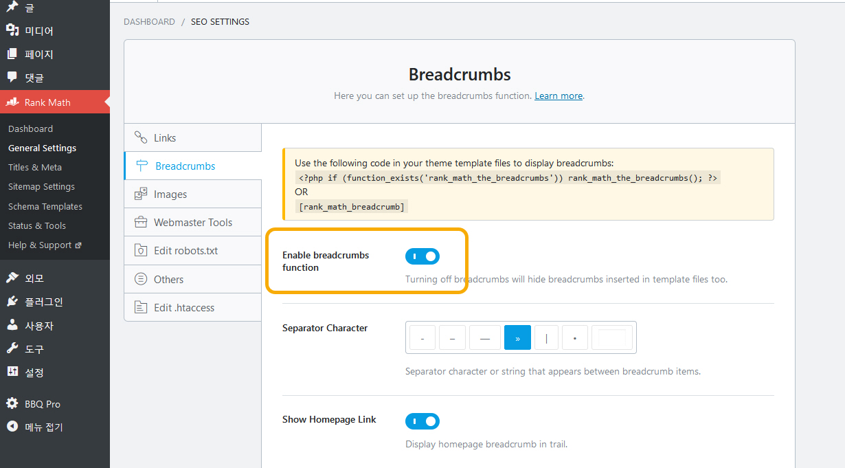 워드프레스 Breadcrumb NavXT 플러그인: 사이트 제목 대신 Home 표시하기