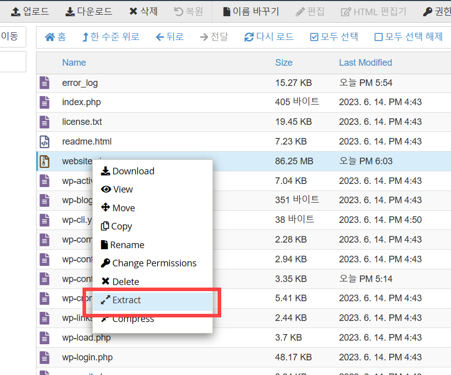 워드프레스 수동 업데이트 방법("서명이 없기에 진본임을 인증할 수 없습니다" 오류)
