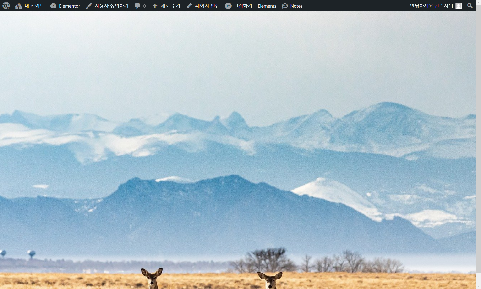 그림과 같이 페이지 전체 화면을 배경 이미지로 채우고 싶은 경우 HTML/CSS 코드 또는 자바스크립트를 사용하여 구현할 수 있습니다. 워드프레스에서 엘리멘터 페이지 빌더를 사용하는 경우에는 매우 간단한 방법으로 페이지 전체를 배경 이미지로 채울 수 있습니다. 엘리멘터 페이지 빌더에서 페이지 전체 화면을 배경 이미지로 채우는 방법 Elementor 페이지 빌더를 사용하는 경우 섹션에 배경 이미지를 지정하고, 배경 이미지가 화면 전체를 채우도록 설정할 수 있습니다. 1. 페이지 편집 화면에서 페이지 템플릿에 Elementor 캔버스를 지정하도록 합니다. 2. 엘리멘터 페이지 빌더 편집 화면에서 섹션을 추가하고 섹션 편집 패널에서 스타일 탭을 클릭합니다. 위의 그림과 같이 백그라운드 이미지를 지정하고 위치(..