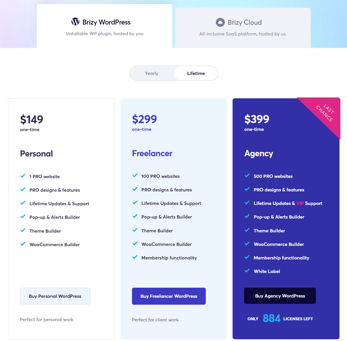 워드프레스 Brizy 페이지 빌더 vs. Brizy Cloud