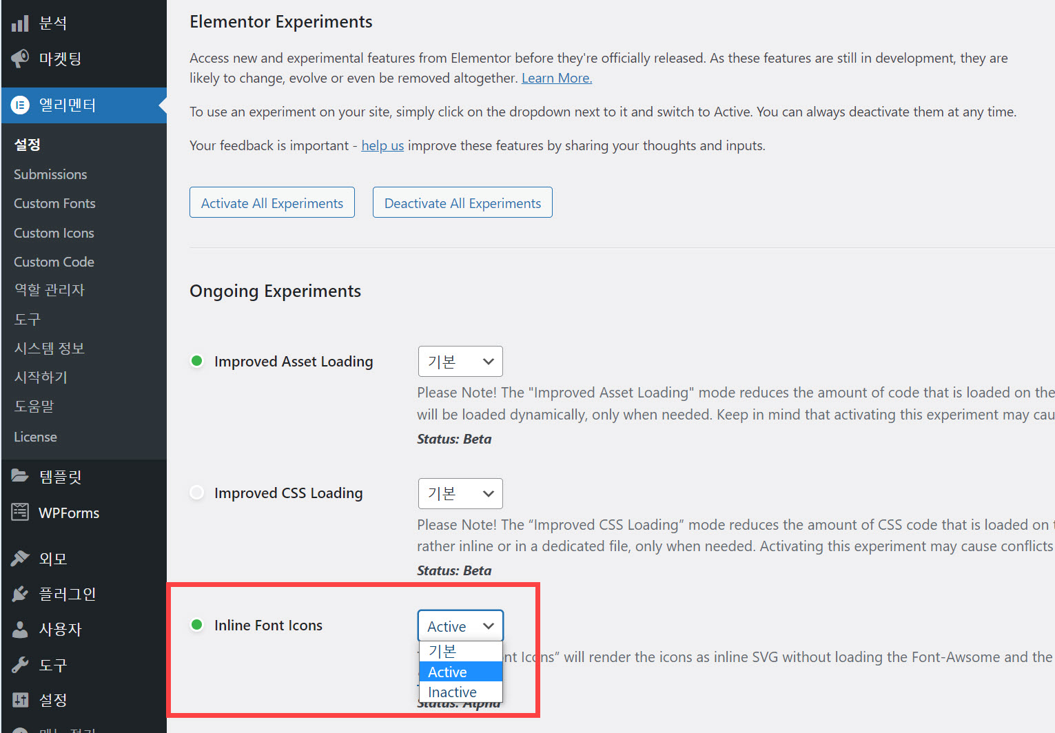 워드프레스 엘리멘터 메뉴가 깨져 표시되는 문제