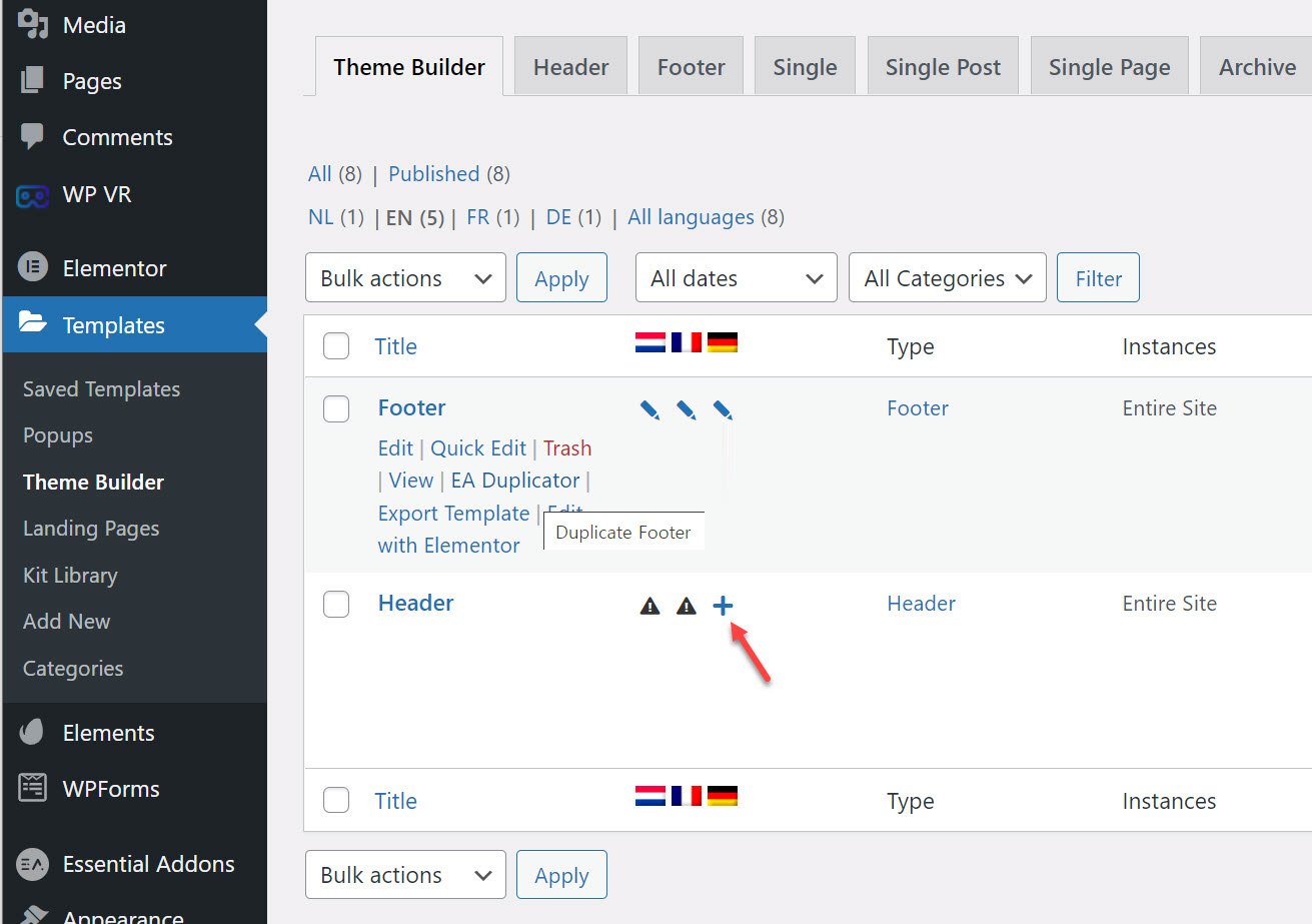 WPML은 워드프레스 사이트를 다국어 사이트로 변환할 때 사용되는 플러그인으로 영어, 일본어, 중국어 등의 언어를 쉽게 추가할 수 있도록 합니다. WPML을 사용하여 원하는 언어를 추가한 후에 콘텐츠를 직접 번역하거나 자동번역 기능을 사용하여 번역할 수 있습니다. 엘리멘터 페이지 빌더로 헤더/푸터 등의 템플릿을 만든 경우 WPML로 템플릿을 각 언어로 번역이 가능합니다. 워드프레스 WPML 플러그인으로 엘리멘터 템플릿 번역하기 최근 WPML로 다국어 사이트를 만든 고객으로부터 푸터를 각 언어별로 번역하는 작업을 맡게 되었습니다. 사이트를 살펴보니 Elementor Pro의 테마 빌더로 영어 푸터 템플릿이 만들어져 있었습니다. 이 푸터를 독일어, 프랑스어, 네덜란드어 등의 언어로 번역하는 작업이었습니다. ..