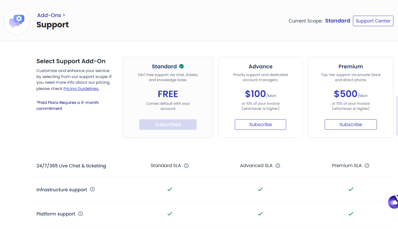 클라우드웨이즈(Cloudways)에는 몇 가지 무료 및 유료 애드온이 제공됩니다. 저는 Elastic Email 애드온과 Rackspace Email 애드온를 활성화하여 사용하고 있습니다. 아스트라 유료 테마를 사용하고 싶은 경우 Astra Pro 애드온을 활성화하면 1년 동안 무료로 이용할 수 있고, 이후에는 월 4달러에 무제한 사이트에 적용하여 사용할 수 있습니다.클라우드웨이즈는 라이브 채팅을 통해 워드프레스 및 서버 문제와 관련하여 24시간 연중무휴 고객지원을 제공하지만, 고급 및 프리미엄 지원을 받고 싶은 경우 Support Add-on을 구독할 수 있습니다. 하지만 지원 애드온을 구독하면 일정 기간 동안 해지를 할 수 없고, 서버 삭제 또는 계정 삭제 시에도 약정 기간 동안 계속 이용해야 합니다..