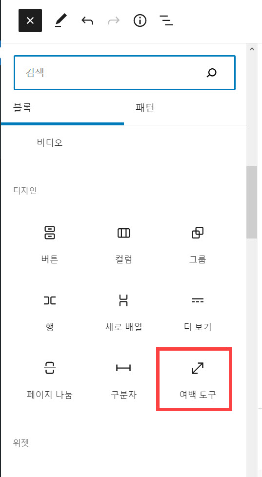 워드프레스에서 글을 작성할 때 여백을 추가하고 싶은 경우가 있을 수 있습니다. 그런 경우 구텐베르크 편집기 (블럭 에디터)에 포함된 '여백 도구'(또는 워드프레스 버전에 따라 '여백 설정') 블럭을 활용하여 여백을 추가할 수 있습니다. 워드프레스 글 작성 시 여백 추가하는 방법 여백을 추가하려는 경우 블록 추가 아이콘(플러스 모양의 아이콘)을 클릭하고 디자인 섹션으로 이동하여 "여백 도구" 블록을 선택하도록 합니다. 또는, 글 작성 화면에서 간단히 "/여백"을 입력하여 여백 도구를 선택할 수 있습니다. [참고*구텐베르크 편집기(블록 에디터)에서 제공하는 키보드 단축키를 활용하면 글 작성 시 능률을 높일 수 있습니다. "시간과 능률을 향상시키는 워드프레스 구텐베르크 키보드 단축키"를 참고해보시기 바랍니다...