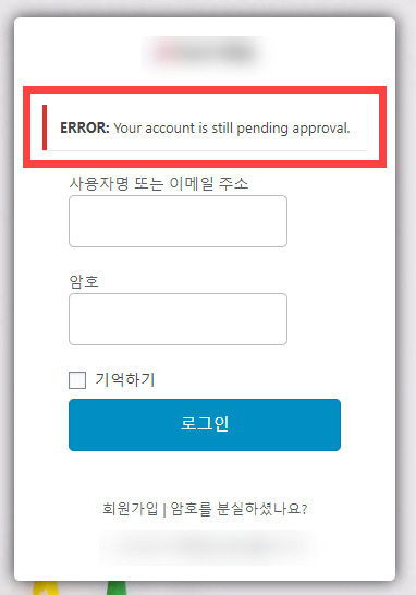 워드프레스 로그인 실패: 'Your account is still pending approval'