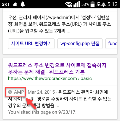 모바일 사용 빈도가 높아짐에 따라 모바일 기기에서 사이트 로드 속도가 점점 중요해지고 있습니다. AMP(Accelerated mobile page)를 적용하면 표준 모바일 페이지보다 속도가 15~80%까지 빨라져 구글 SEO에 유리하게 작용할 수 있습니다. AMP 페이지를 구글에 제출한 경우 모바일 장치를 이용하여 구글에서 검색하면 AMP 페이지 아이콘이 검색 결과에 표시됩니다. 만약 모바일에서 속도가 느려서 고민되는 경우 AMP 적용을 고려해볼 수 있습니다. 워드프레스에서 AMP를 적용하는 방법은 다음 글을 참고해보세요. 워드프레스에서 구글 AMP를 적용하는 방법 저는 AMP를 적용했다가 워드프레스 인기 매거진 테마인 Newspaper (뉴스페이퍼)로 사이트를 리뉴얼하면서 AMP를 제거했습니다. AMP..