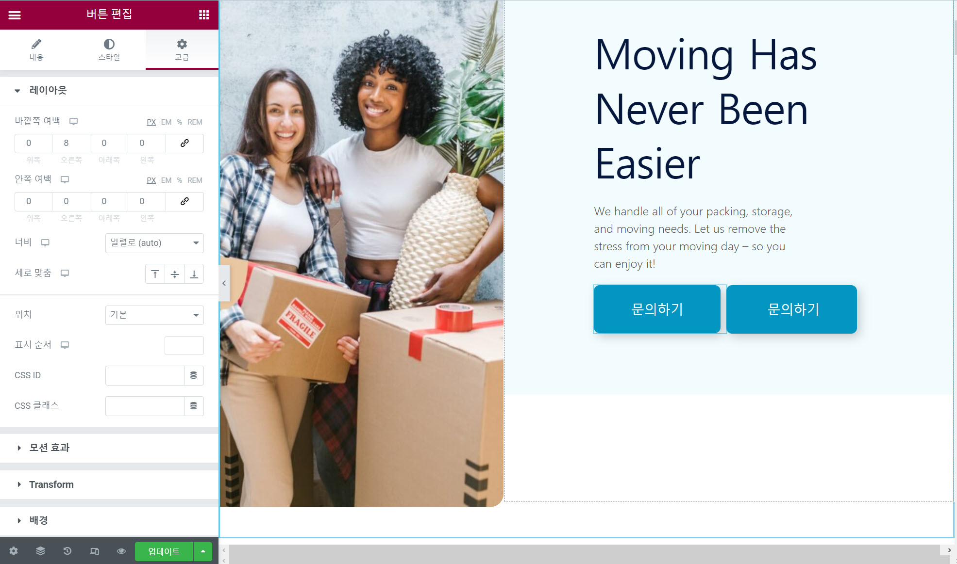 엘리멘터 버튼 위젯: 버튼 두 개를 나란히 배치하는 방법
