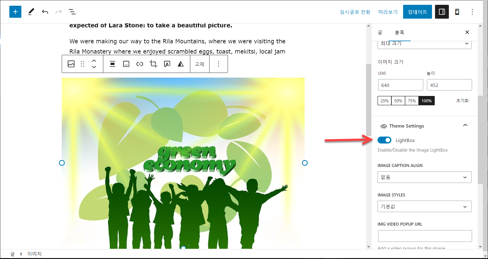 뉴스, 매거진, 블로그 사이트에 많이 사용되는 뉴스페이퍼(Newspaper) 테마에는 블록 에디터(구텐베르크)에서 이미지 라이트박스 효과를 설정하는 옵션이 제공됩니다. 또한, 블로그 포스트 내의 모든 이미지를 모달 창(라이트박스)으로 표시하도록 설정하는 것도 가능합니다. 뉴스페이퍼 테마: 이미지 라이트박스 (모달 창) 설정 방법 구텐베르크의 이미지 블록 사용하기 구텐베르크(Gutenberg)는 워드프레스 버전 5.0부터 기본 편집기로 통합되어 사용되고 있으며 "블록 에디터(Block Editor)"라고도 합니다. 구텐베르크에서 이미지 블록을 삽입하고 이미지를 클릭한 다음, 오른쪽의 이미지 블록 설정 패널에서 LightBox 옵션을 활성화할 수 있습니다. 위의 그림과 같이 Theme Settings 아래의..