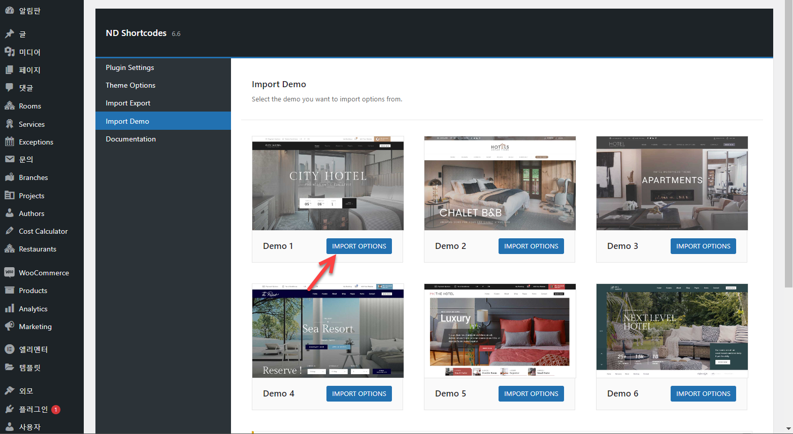 워드프레스 Hotel Booking (호텔 예약) 테마 데모 설치하기
