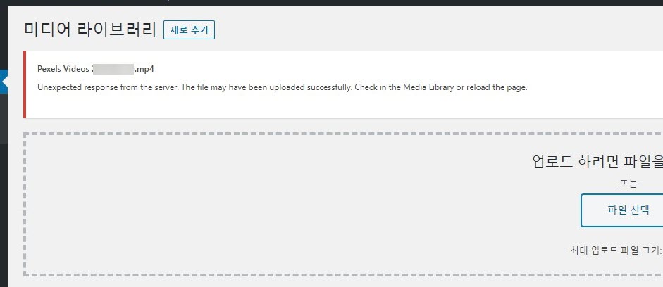 워드프레스 파일 업로드 시 'Unexpected response from the server' 오류