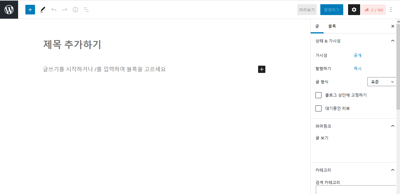 최근 워드프레스 5.7 업데이트가 릴리즈되었습니다. 워드프레스를 최신 버전으로 업데이트한 후에 글 작성 화면과 페이지 작성 화면에서 상단 툴바와 왼쪽의 메뉴가 사라진 것을 발견했습니다. 이때까지 상단 툴바가 표시되어 글 편집/페이지 편집 화면에서 업데이트 후 글 보기 등을 쉽게 할 수 있었지만 상단 툴바가 없으니 불편한 것 같습니다. 워드프레스 글/페이지 편집 화면에서 상단 툴바와 왼쪽의 사이드바가 표시되지 않은 경우 아래의 방법으로 표시하도록 설정할 수 있습니다. 워드프레스 글 작성 화면에서 상단 툴바와 왼쪽 메뉴가 표시되지 않는 경우 워드프레스에서 기본 에디터인 구텐베르크(Gutenberg)를 사용하는 경우 글/페이지 편집 화면이 위의 그림과 같이 왼쪽에 사이드바와 상단의 툴바가 없이 표시되는 경우가..