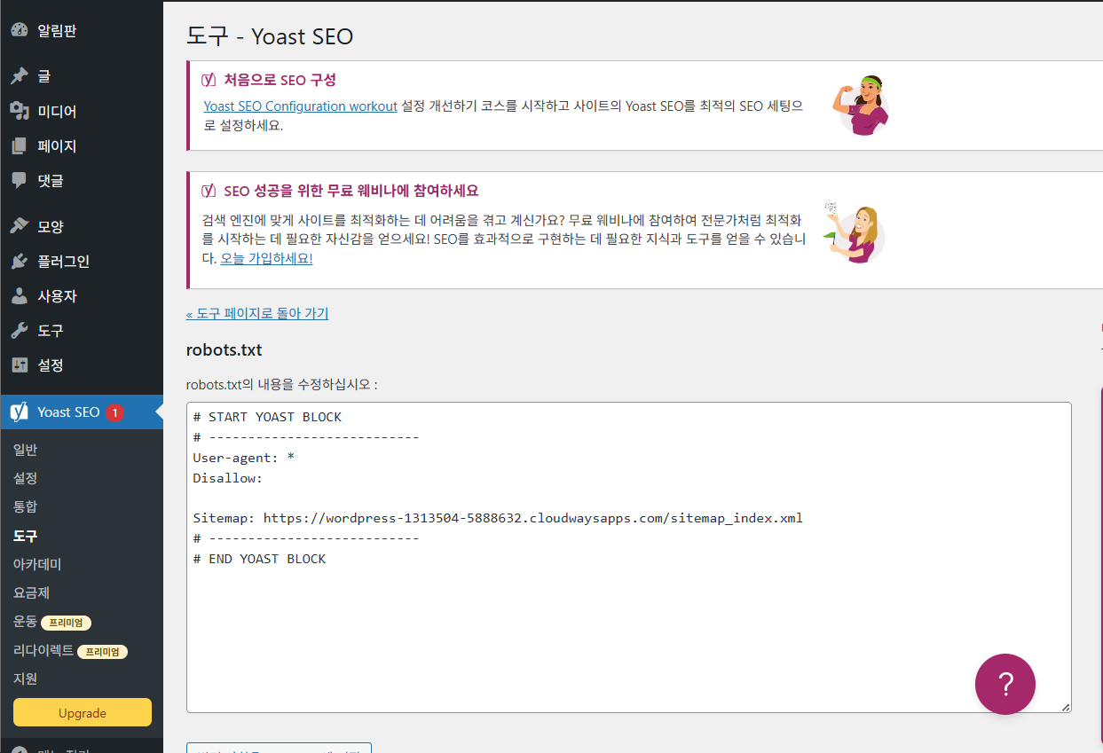 워드프레스 Yoast SEO에서 Robots.txt 파일 편집하기