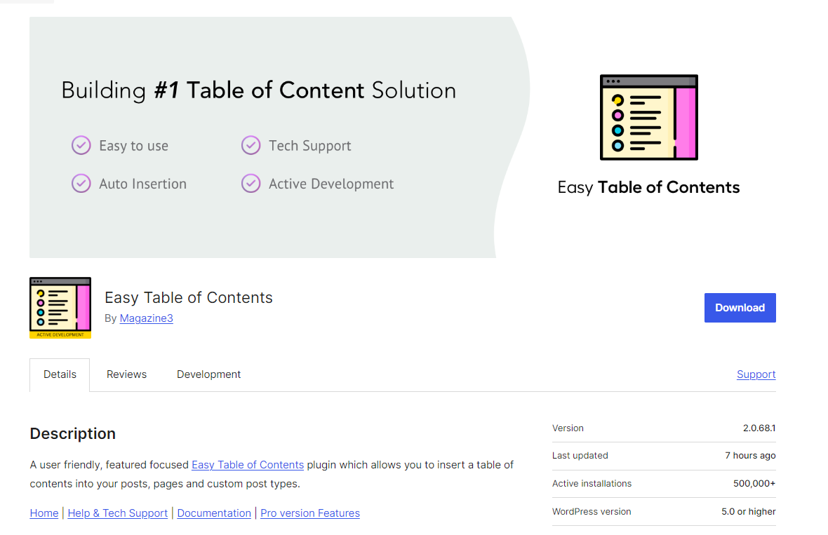 워드프레스에서는 무료 또는 유료 목차 플러그인을 사용하여 쉽게 목차를 표시할 수 있습니다. 무료 목차 플러그인 중에서는 쉬운 목차(Easy Table of Contents) 플러그인이 많이 사용되고 있습니다.쉬운 목차 플러그인은 현재 50만 개가 넘는 워드프레스 사이트에 설치되어 사용되고 있습니다. 쉬운 목차 2.0.68 버전으로 업데이트 후에 사이트가 다운되거나 특정 기능이 작동하지 않는 등의 충돌이 발생하는 경우가 있다고 합니다. 2.0.68.1 버전에서 문제가 해결되었습니다. Easy Table of Contents 사용 시 최신 버전으로 업데이트하시기 바랍니다.워드프레스 쉬운 목차 (Easy TOC) 플러그인 버그 수정 (최신 버전 업데이트)워드프레스용 Easy Table of Contents 플..