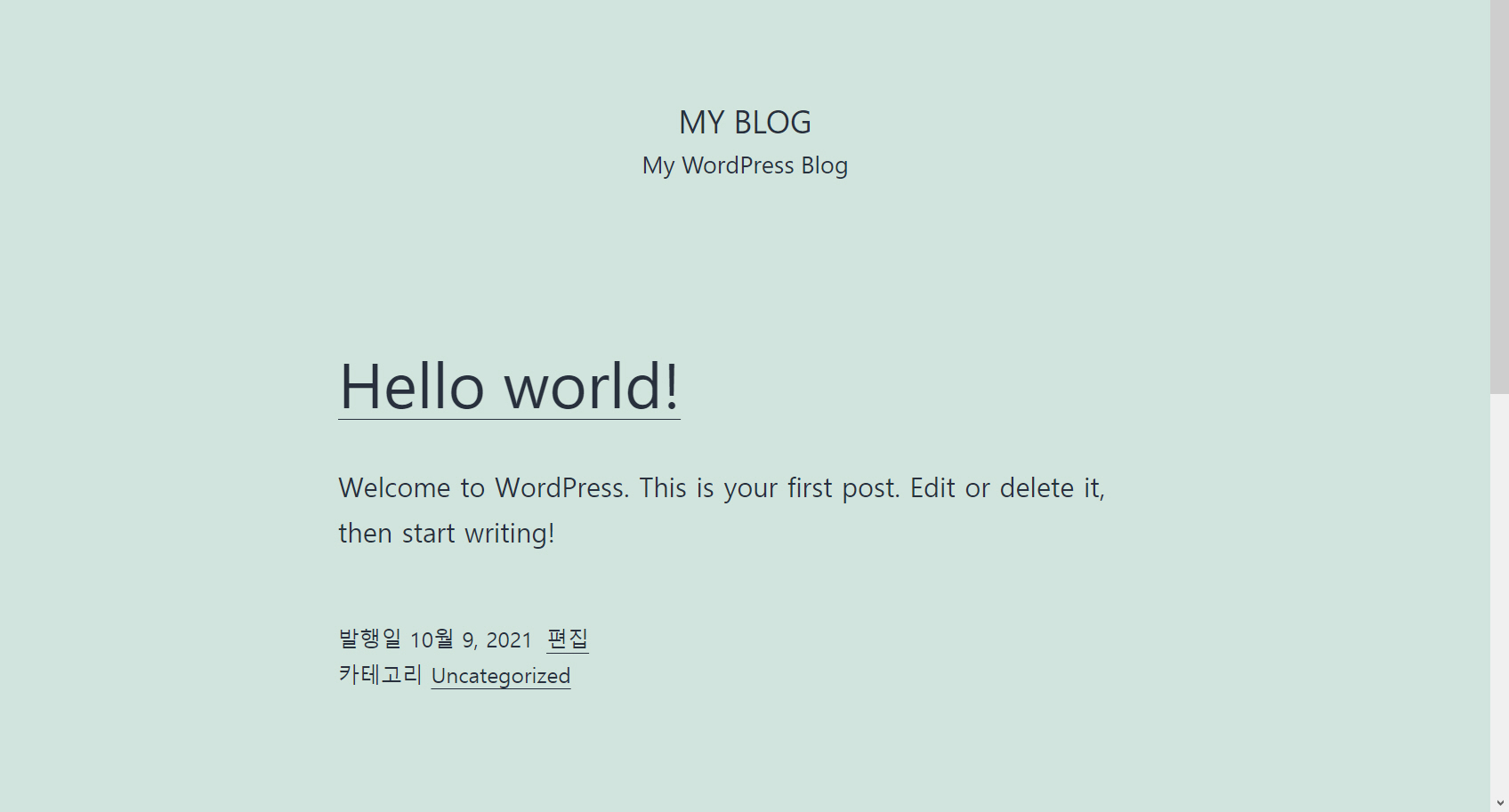 워드프레스의 2021년 공식 테마인 Twenty Twenty-One은 미니멀한 테마로 커스텀하기 좋도록 비어 있는 캔버스와 같습니다. 워드프레스를 설치하면 보통 이 테마가 활성화되어 있을 것입니다. 하지만 글을 작성하거나 페이지를 만들면 배경색이 녹색(파스텔 그린)으로 표시됩니다. 사용자 정의하기에서 전체 배경색을 변경하거나 커스텀 CSS를 사용하여 특정 페이지의 배경색과 글자색을 바꿀 수 있습니다. 워드프레스 Twenty Twenty-One 테마 배경색 변경하기 워드프레스를 자동 설치하면 보통 위의 그림과 같이 이공이일(Twenty Twenty-One) 테마가 활성화되고 배경색이 녹색으로 표시될 것입니다. Twenty Twenty-One 테마의 배경색은 워드프레스 알림판 > 외모 > 사용자 정의하기 >..