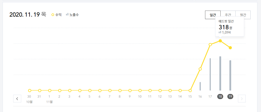 카카오 애드핏은 수익률이 낮아서 신청하지 않고 있다가 지난 주말에 티스토리 블로그에서 애드센스 광고가 표출되지 않는 문제가 발생한 후에 Kakao Adfit 광고를 신청했습니다. 일요일에 신청하니 월요일 오후에 승인이 났습니다. 카카오 애드핏 광고 수익 16일 저녁부터 본격적으로 광고가 표시되기 시작하면서 하루에 200~300원 내외의 수익이 발생하고 있습니다.ㅎ 현재 사이드바에만 광고 하나를 표시하고 있습니다. 그러므로 PC 사용자에게만 광고가 표시되고 모바일 사용자들에게는 광고가 표시되지 않을 것 같습니다. (모바일 사용자들이 광고를 보려면 본문 글을 다 읽고 댓글 아래로 계속 스크롤해야 하는데, 그렇게 하는 방문자는 아무도 없을 것입니다.) 현재 추세라면 6~7개월이 되어야 인출할 수 있는 금액에 ..