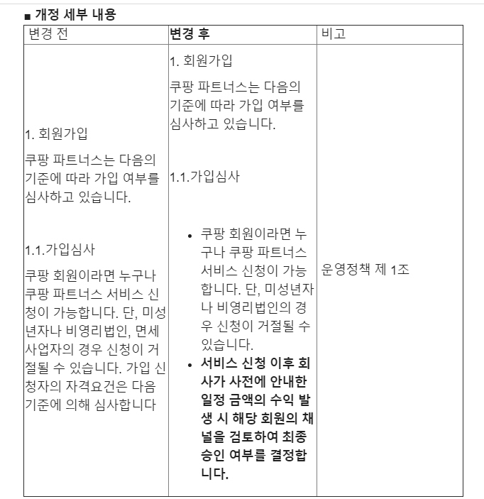 과거에는 쿠팡 파트너스에 지원하면 승인이 되었지만 얼마 전부터 승인이 까다로워졌다고 합니다. 어제는 최종 승인 기준을 변경한다는 이메일을 발송했고 오늘은 그 기준을 구체적으로 공지했습니다. 쿠팡 파트너스 최종 승인 기준 변경 - 판매 금액 15만 원 이상 발생해야 승인 가능 쿠팡 파트너스가 2021년 1월 21일 자로 이용약관 및 운영정책이 개정되어 변경 내용에 관한 사전 안내 메일을 보내왔습니다. 개정 세부 내용은 "서비스 신청 이후 회사가 사전에 안내한 일정 금액의 수익 발생 시 해당 회원의 채널을 검토하여 최종승인 여부를 결정"한다는 것이 골자입니다. 어제 보내온 메일에서는 '사전에 안내한 일정 금액의 수익 발생'이라고 명시했지만, 오늘은 여기에 대한 구체적인 기준을 공지했습니다. 최종 승인 기준이..