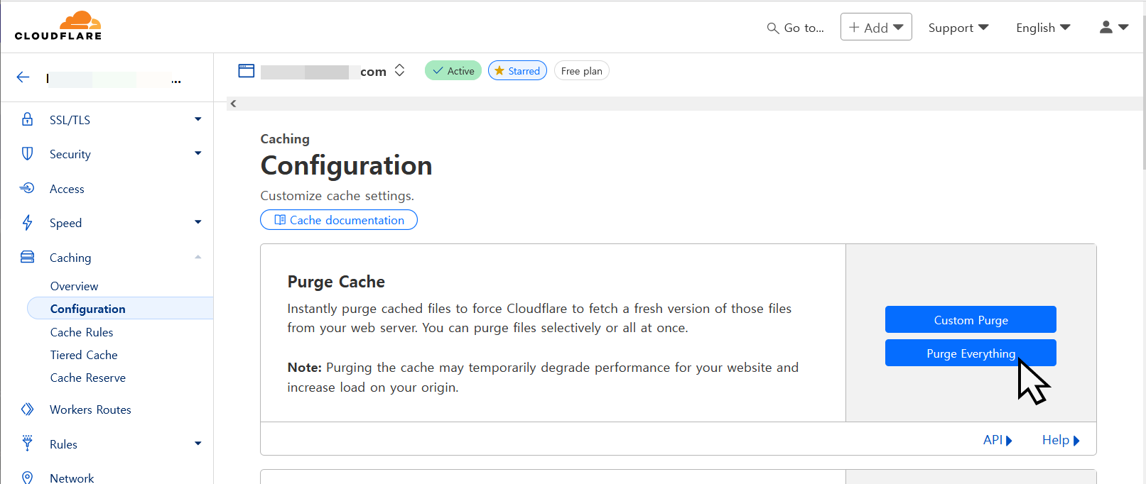 워드프레스: 클라우드플레어(Cloudflare) 캐시 삭제 방법