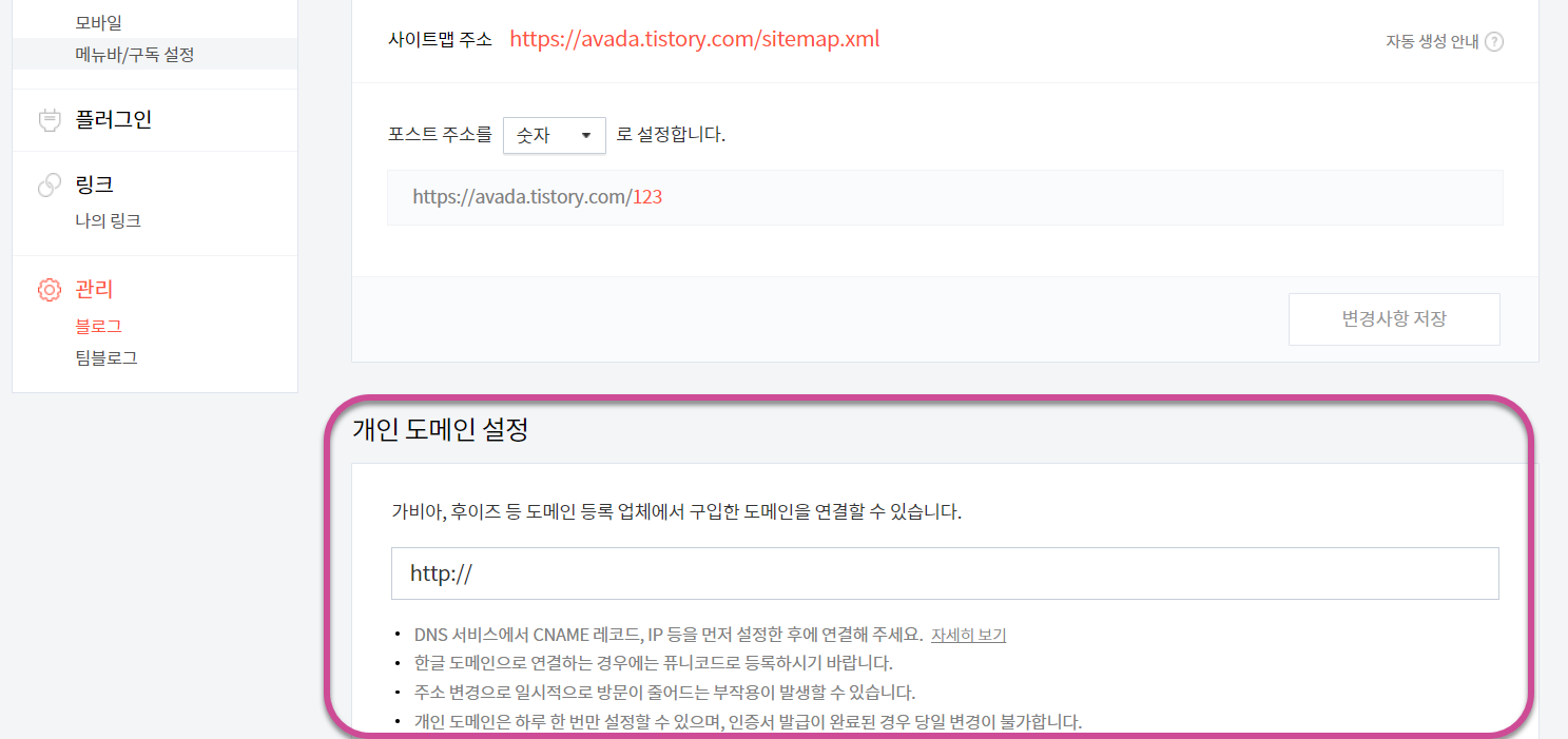 티스토리 블로그에 개인 도메인(2차 도메인)을 연결할 수 있습니다. 도메인은 가비아나 네임칩(Namecheap) 등 도메인 등록기관에서 등록할 수 있습니다. 티스토리에 도메인을 연결하면 SSL 인증서가 자동으로 설치됩니다. 하지만 티스토리에는 www가 없는 도메인과 www가 있는 도메인 중 하나만 추가가 가능합니다. 일반적으로 www가 없는 도메인을 연결하는 경우가 많습니다. 이 경우 www 도메인에 접속하면 SSL 인증서 오류가 발생합니다. www 도메인으로도 접속이 가능하도록 하고 싶은 경우 몇 가지 방법 중 하나로 www 도메인을 클라우드웨이즈와 같은 웹호스팅에 연결하고 www 도메인으로 접속 시 www가 없는 도메인으로 리디렉션시킬 수 있습니다.티스토리에 개인 도메인 연결하기티스토리 관리자 페이지..