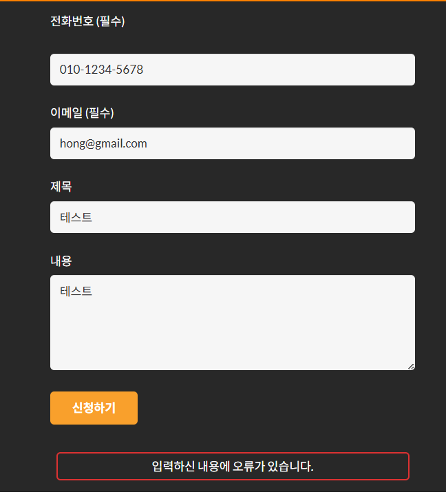 워드프레스 Contact Form 7 '하나 이상의 항목에 오류가 있습니다' 오류가 발생하는 경우
