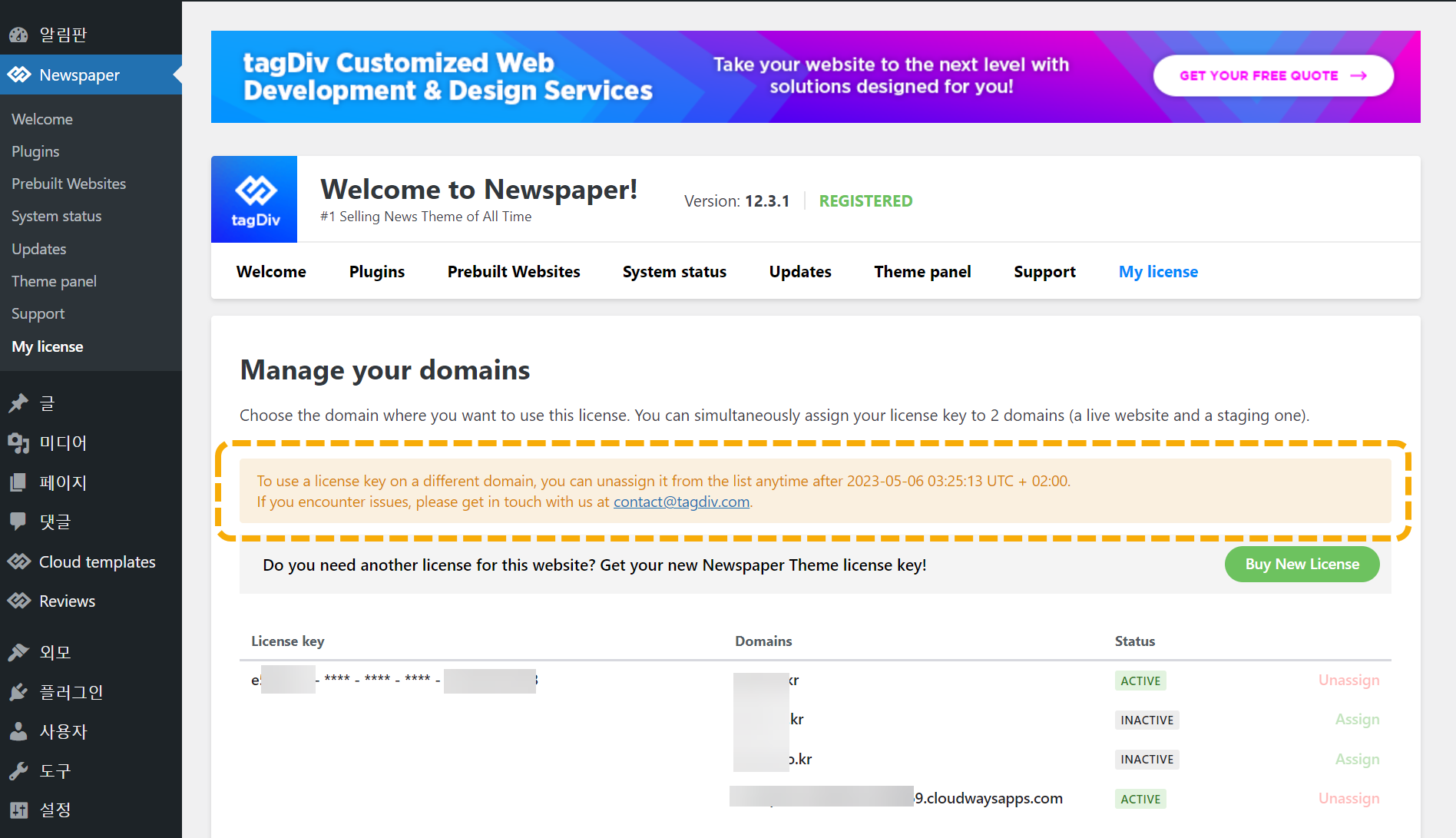 클라이언트께서 워드프레스 뉴스페이퍼 테마가 설치된 사이트에서 치명적인 오류가 발생하는 문제로 연락을 해오셨습니다. 사이트를 살펴보니 설치된 뉴스페이퍼 관련 플러그인이 뉴스페이퍼 버전과 호환되지 않아서 발생하는 문제였습니다. 뉴스페이퍼에 포함된 플러그인을 설치하거나 업데이트하려는 경우 라이선스 키가 등록되어야 합니다. 해당 사이트에서는 어떤 이유로 인해 라이선스가 무효화된 상태였습니다.워드프레스 뉴스페이퍼 (Newspaper) 테마 라이선스 재설정하기뉴스페이퍼 테마를 사용하면 초보자도 쉽게 퀄리티 높은 뉴스, 웹진, 블로그 사이트를 제작할 수 있다는 장점이 있습니다. 심플한 블로그를 운영하려는 경우에는 속도가 빠르고 가벼운 GeneratePress 테마를 고려할 수 있습니다. 고객사 사이트와 관리자 페이지..