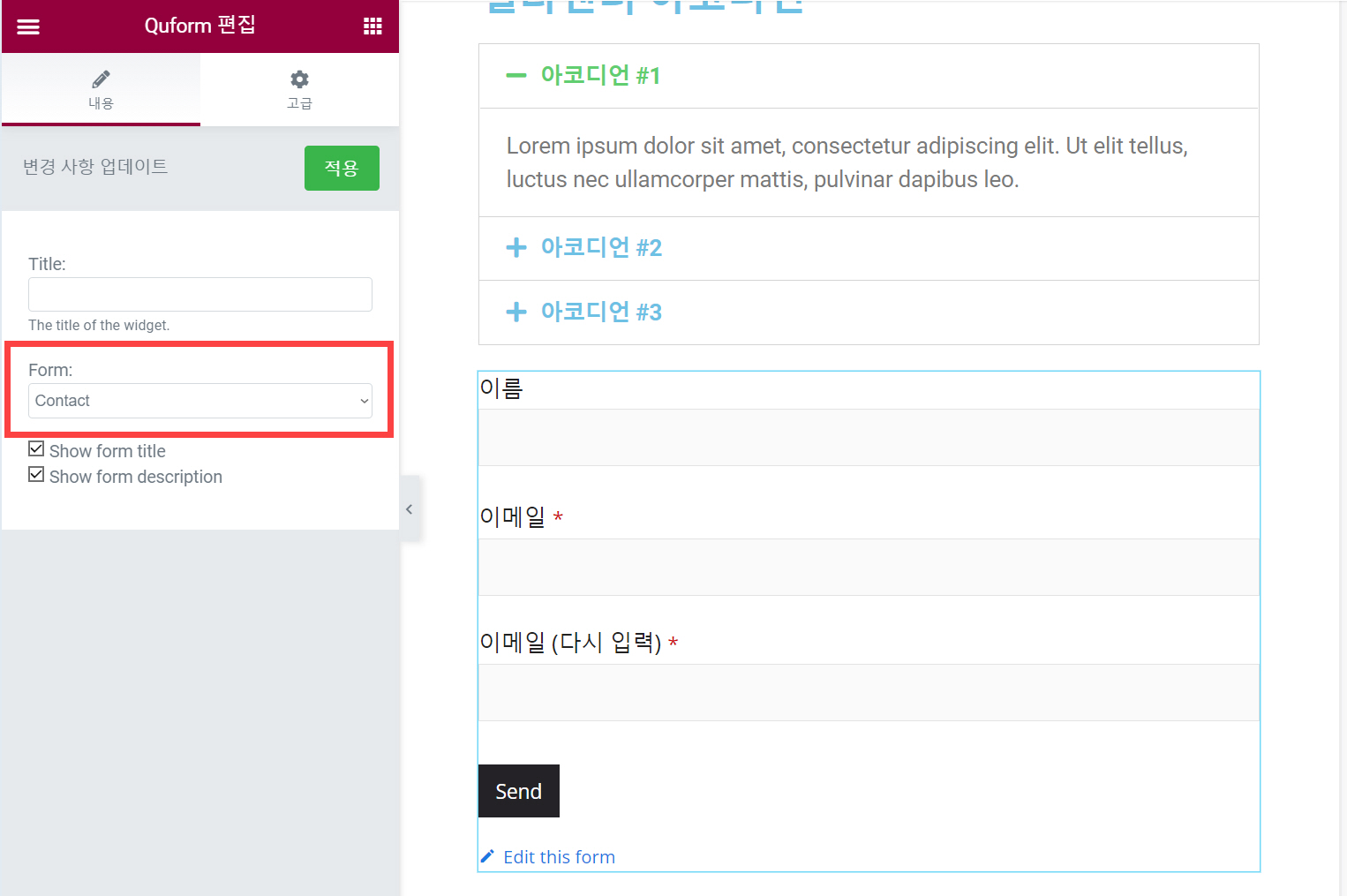 워드프레스 Quform 플러그인 확인 이메일 필드 추가하기