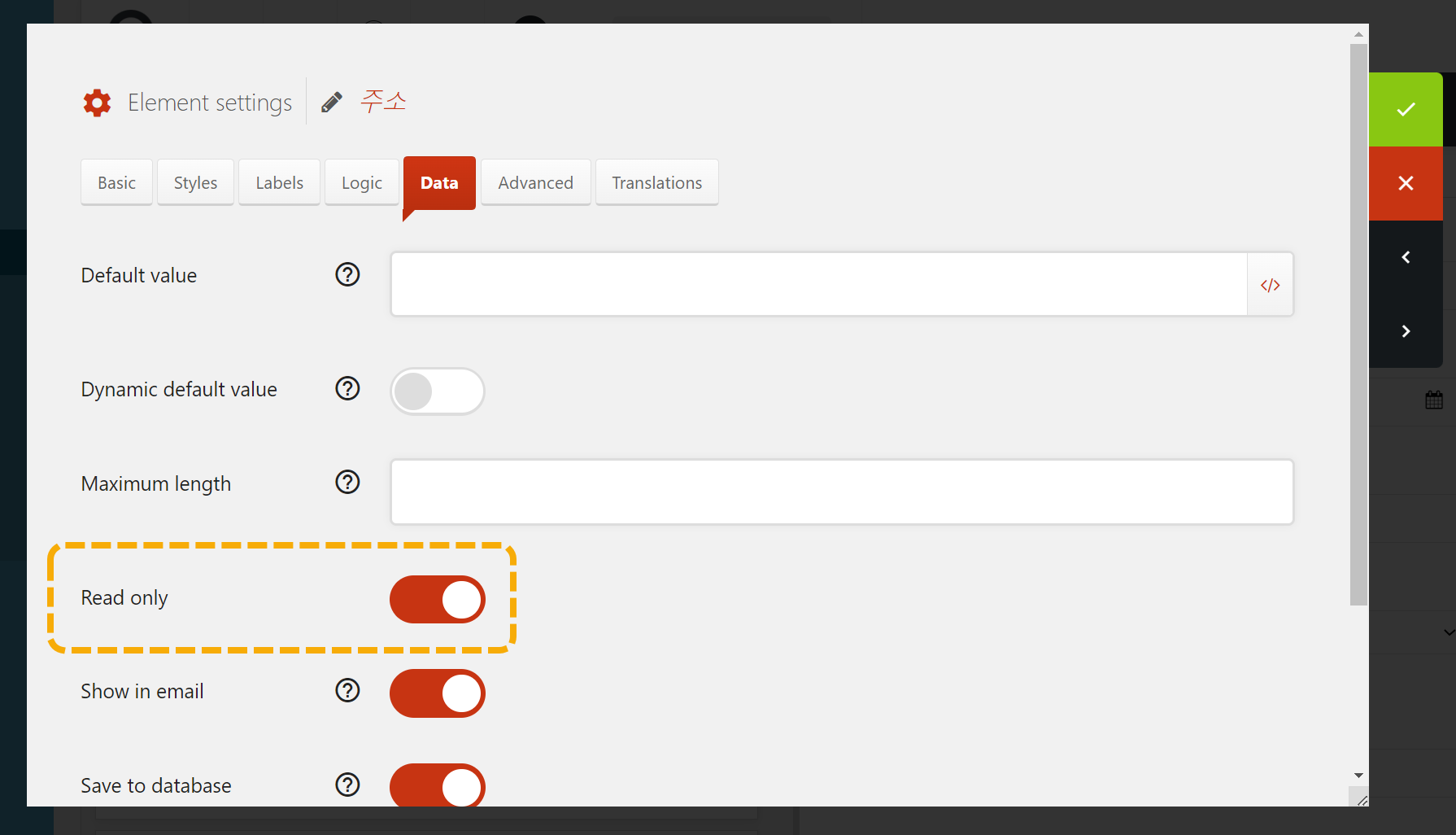 워드프레스 Quform 플러그인: 입력 필드를 읽기 전용으로 설정하는 방법