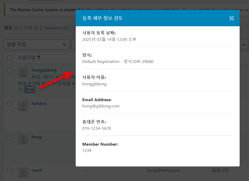 워드프레스 Ultimate Member: 회원 정보 확인 방법